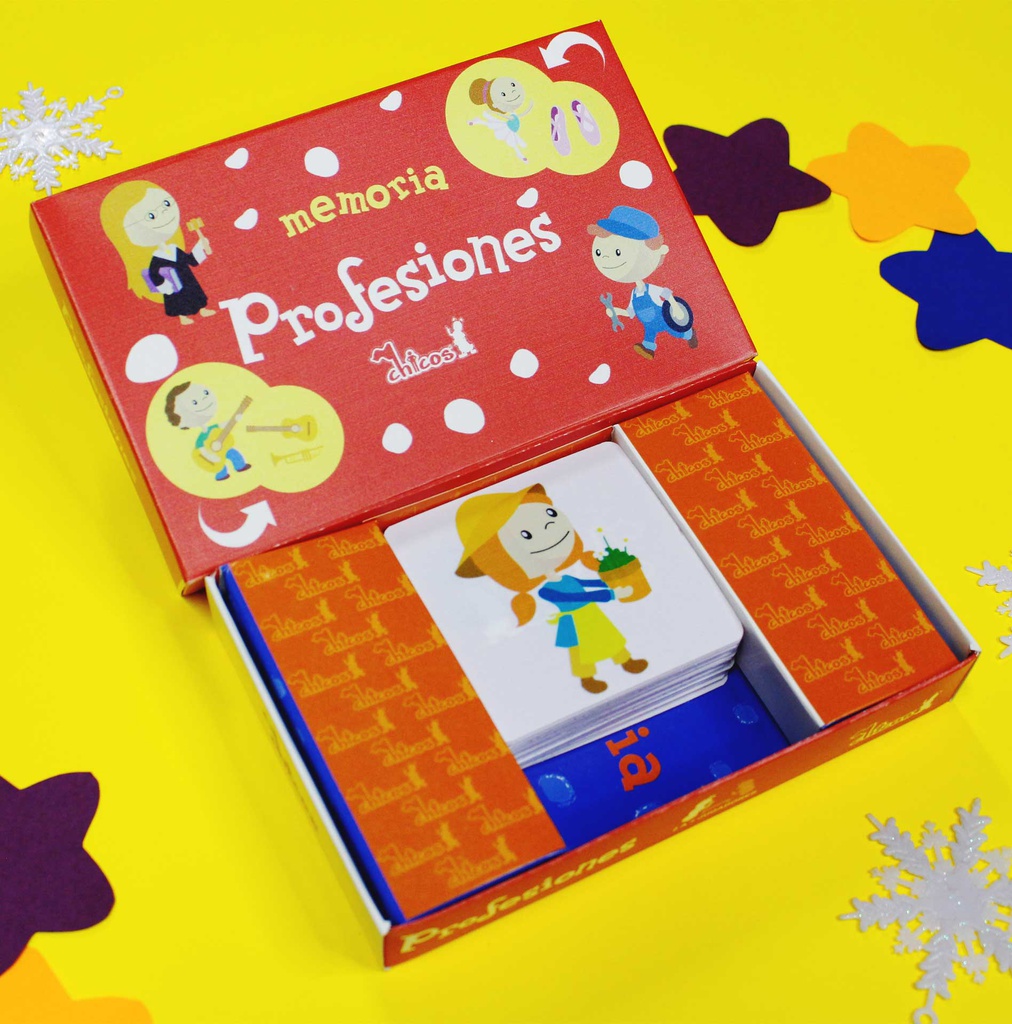 Los pequeños se divertirán jugando y aprendiendo las Profesiones. Cada tarjeta muestra ilustraciones sobre las diferentes profesiones y sus instrumentos de trabajo. Cuando les pregunten qué quieren ser cuando sean grandes, ¡sabrán la respuesta! Los niños buscarán los objetos recordando las ilustraciones de roles en las tarjetas. Profesiones estimula la memoria y lenguaje mientras se divierten.